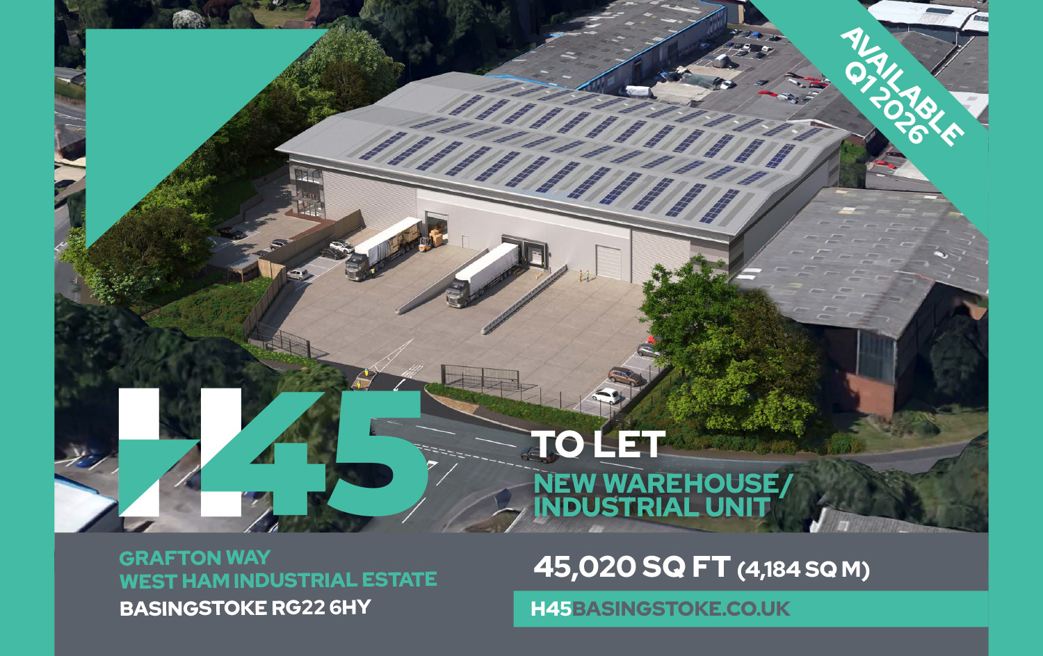 H45 Grafton Way will provide a brand-new warehouse/factory facility. It will be built particularly with environmental considerations taken into account, with the benefit of 10m haunch height, 2 level access doors and 2 dock leveller doors. There will be 56 car spaces and a secure yard with 40m depth.